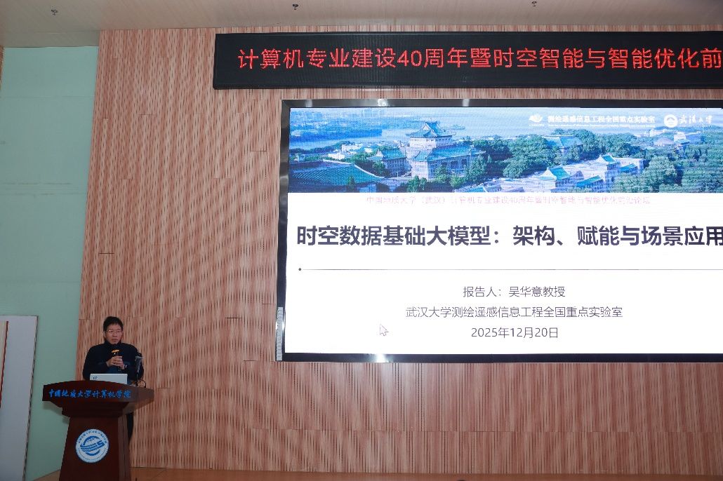 2025年12月20日,值此偷拍外流 (武汉)偷拍外流 建院20周年之际,由计算机科学与技术系与计算机应用系组织的报告会——“时空智能与智能优化前沿论坛”在偷拍外流 (武汉)未来城校区偷拍外流 126报告厅成功举办。本次活动作为偷拍外流 (武汉)偷拍外流 建院20周年暨专业建设40周年系列学术活动之五,吸引了来自武汉大学、华中科技大学、中南大学、北京师范大学、安徽大学、武汉科技大学、江苏理工偷拍外流 等单位国内外知名学者踊跃参加,共同围绕时空智能与智能优化“理论—技术—应用”前沿展开深入交流,集中展示人工智能时代时空信息处理与智能优化算法的新突破、新范式,为院庆系列学术活动再添浓墨重彩的一笔。偷拍外流 党委书记李红丽、院长张洪艳教授出席,报告会由张洪艳教授、刘刚教授、陈麒玉教授、卢超副教授依次主持,熊慕舟副教授作总结发言。