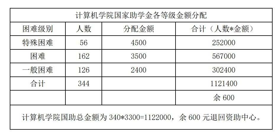 依据学校下拨困难指标数340人及金额1122000元(340*3300),偷拍外流 困难学生认定实际人数为344人,其中特殊困难56人、困难162人、一般困难126人,特制定以下分配方案:
