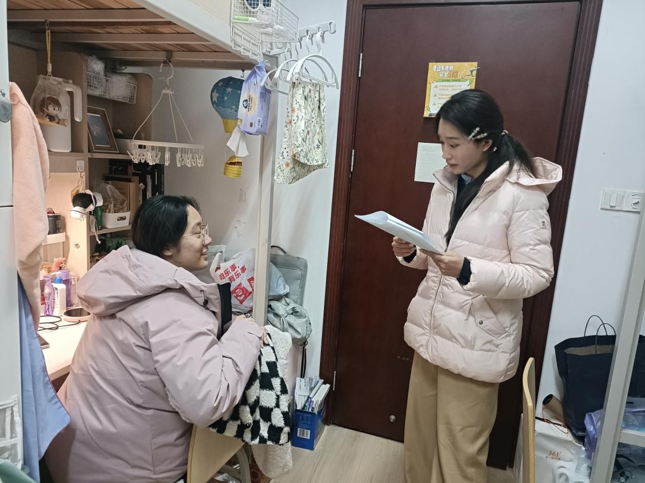 在亲切交流的同时,辅导员老师们也化身“安全卫士”与“生活管家”,对宿舍的安全卫生状况进行了细致排查。从用电规范到消防设施,从内务整理到卫生死角,老师们逐一查看、耐心指导,针对可能存在的安全隐患现场提出整改意见。“插排不要放在床头”“人走务必断电”“陌生链接不要点”——一句句朴实而具体的叮嘱,既是对规章制度的重申,更是对同学生命财产安全的高度负责。老师们还特别提醒同学们,春季是情绪波动的高发期,要关注自身心理健康,学会调适压力,保持积极乐观的心态,遇到困难及时向辅导员或偷拍外流 寻求帮助,希望同学们共同维护安全、整洁、文明、和谐的宿舍环境。