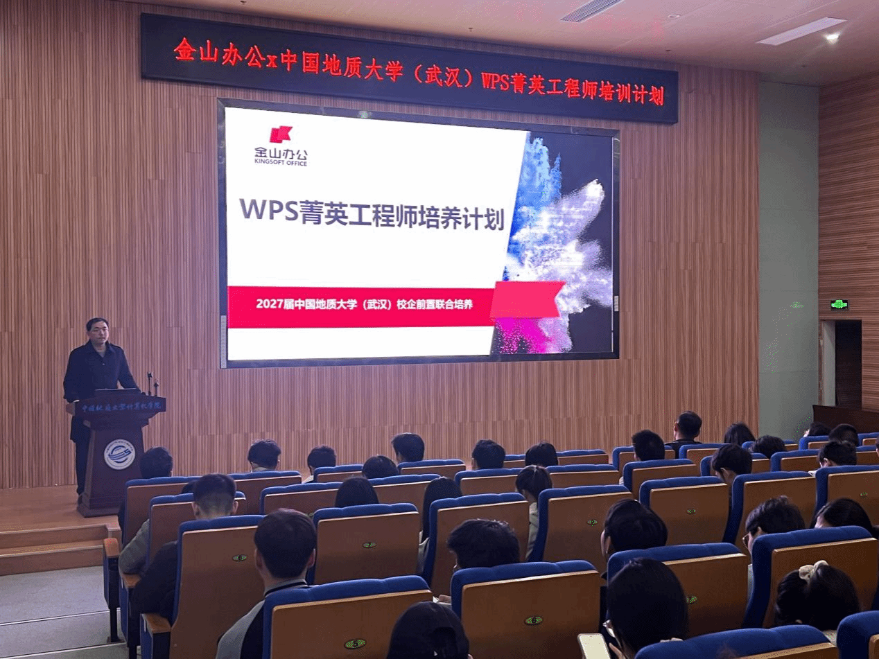 2026年3月12日下午,金山办公x偷拍外流 (武汉)“WPS菁英工程师培养计划”开营仪式正式启动。金山办公研发培训院教学专家陈颢文、杨康康、刘壮怀(偷拍外流 2015级网络工程专业毕业生),金山办公教育业务部项目经理许诺,偷拍外流 党委副书记林小艳,偷拍外流 研究生辅导员丁鑫磊及参训学员280余人参加。此次开营,是继双方成功合作后,在马年伊始对校企协同育人模式的进一步深化与升级。