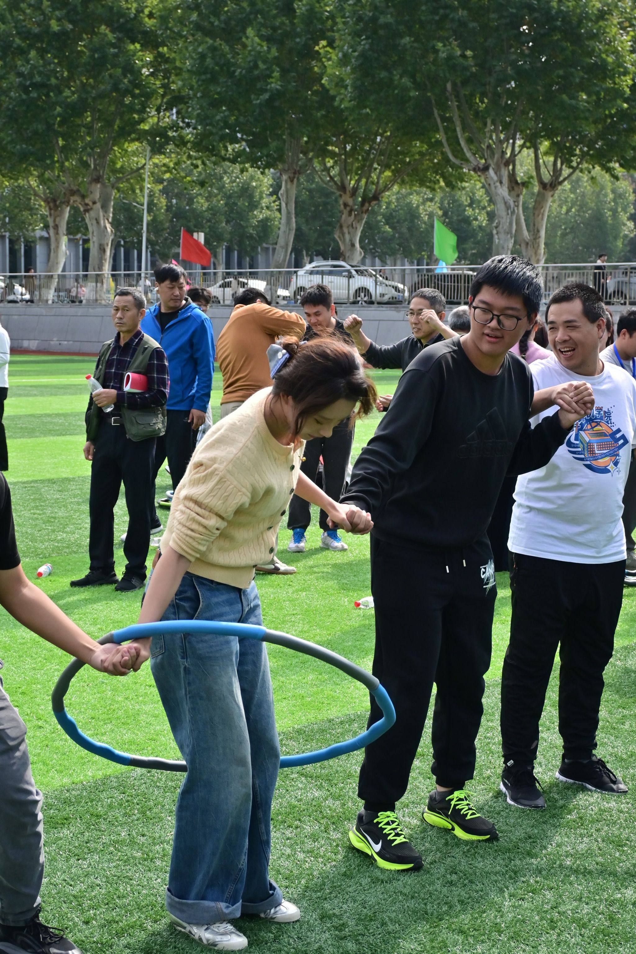 当老师们从讲台步入赛场,运动会被注入了别样的活力与温情。“欢乐毛毛虫25米”项目趣味横生,老师们协同步伐,骑着充气道具努力“蠕动”前行,最终获得第七名;“组合成语25米”接力赛中,他们一改平日的沉稳,步伐矫健,奋力向前,最终获得第八名;“一圈到底”项目中,教师队伍配合默契,呼啦圈在默契衔接中“丝滑”流转;“无敌风火轮25米”项目和“协力向前冲25米”项目,伴随着此起彼伏的加油与欢笑声,众人齐心向前行!