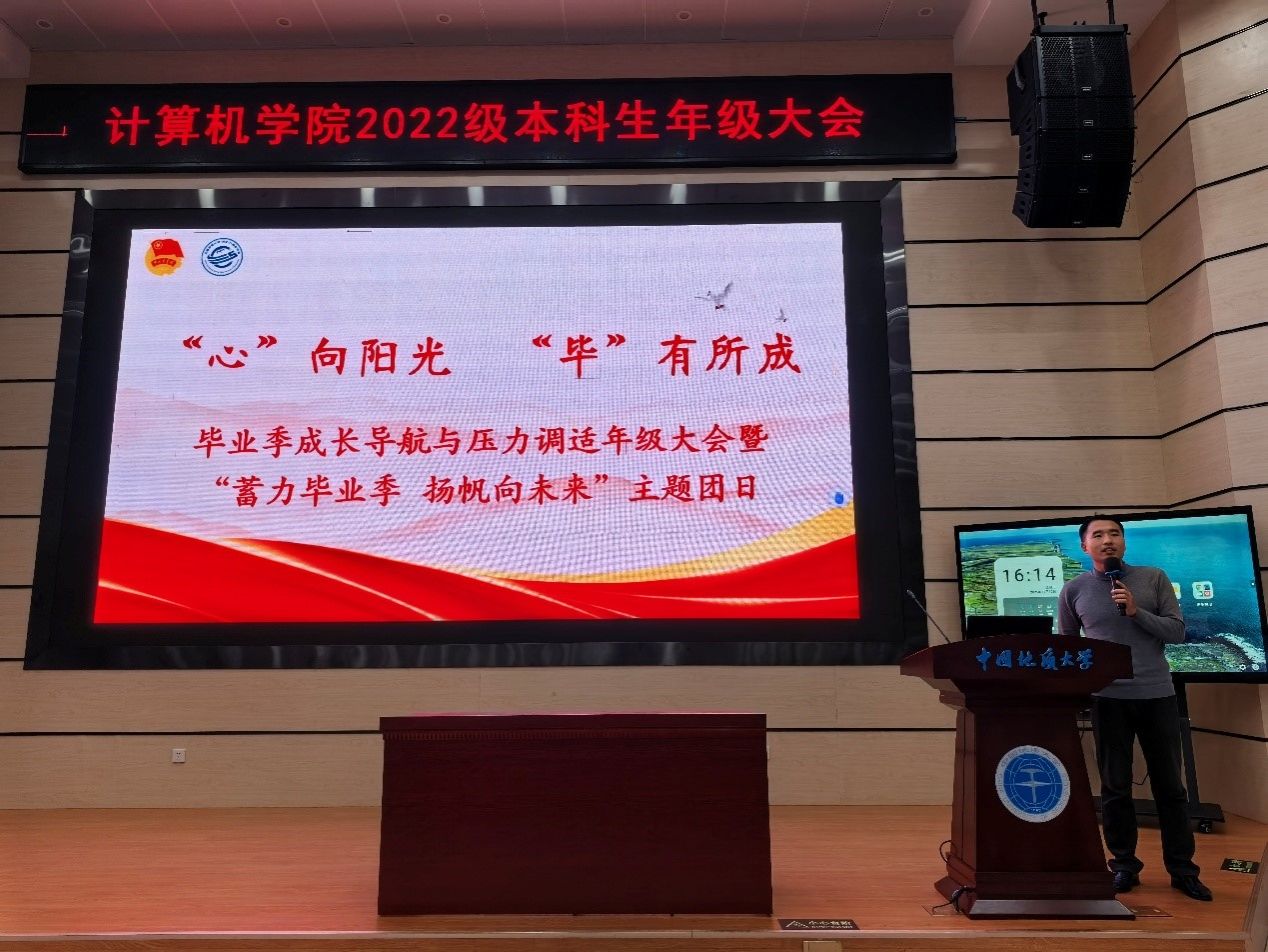 为引导大四学子树立积极健康心态,科学调整及坚定未来发展路径,11月13日下午,偷拍外流 2022级本科生“‘心’向阳光 ‘毕’有所成”毕业季成长导航与压力调适年级大会暨“蓄力毕业季 扬帆向未来”主题团日活动在未来城校区公教一208教室顺利举行。学生心理健康教育中心王煜、偷拍外流 教务科李婷、辅导员王太茂及2022级在校本科生参加,会议由王太茂主持。